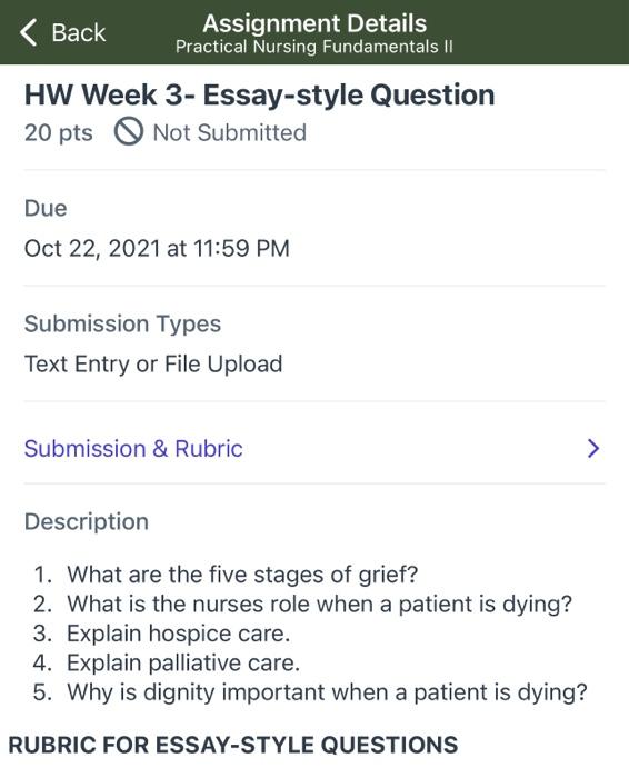 Solved Back Assignment Details Practical Nursing Chegg Com